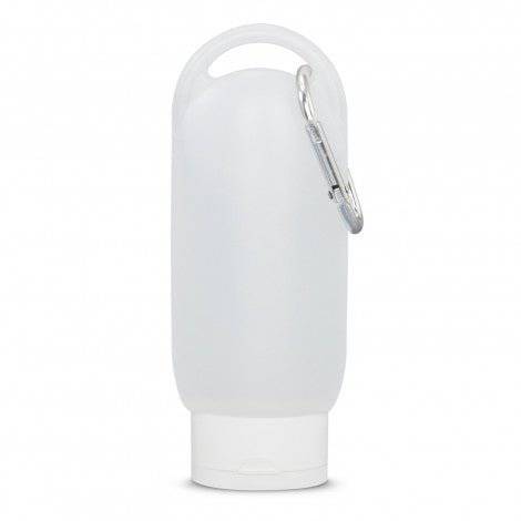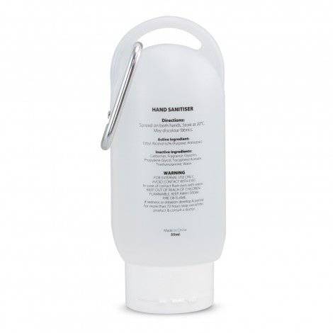 Gel hand sanitiser in a convenient tube with a no mess flip cap and a carabiner clip. It has ingredients information on the back of the tube.